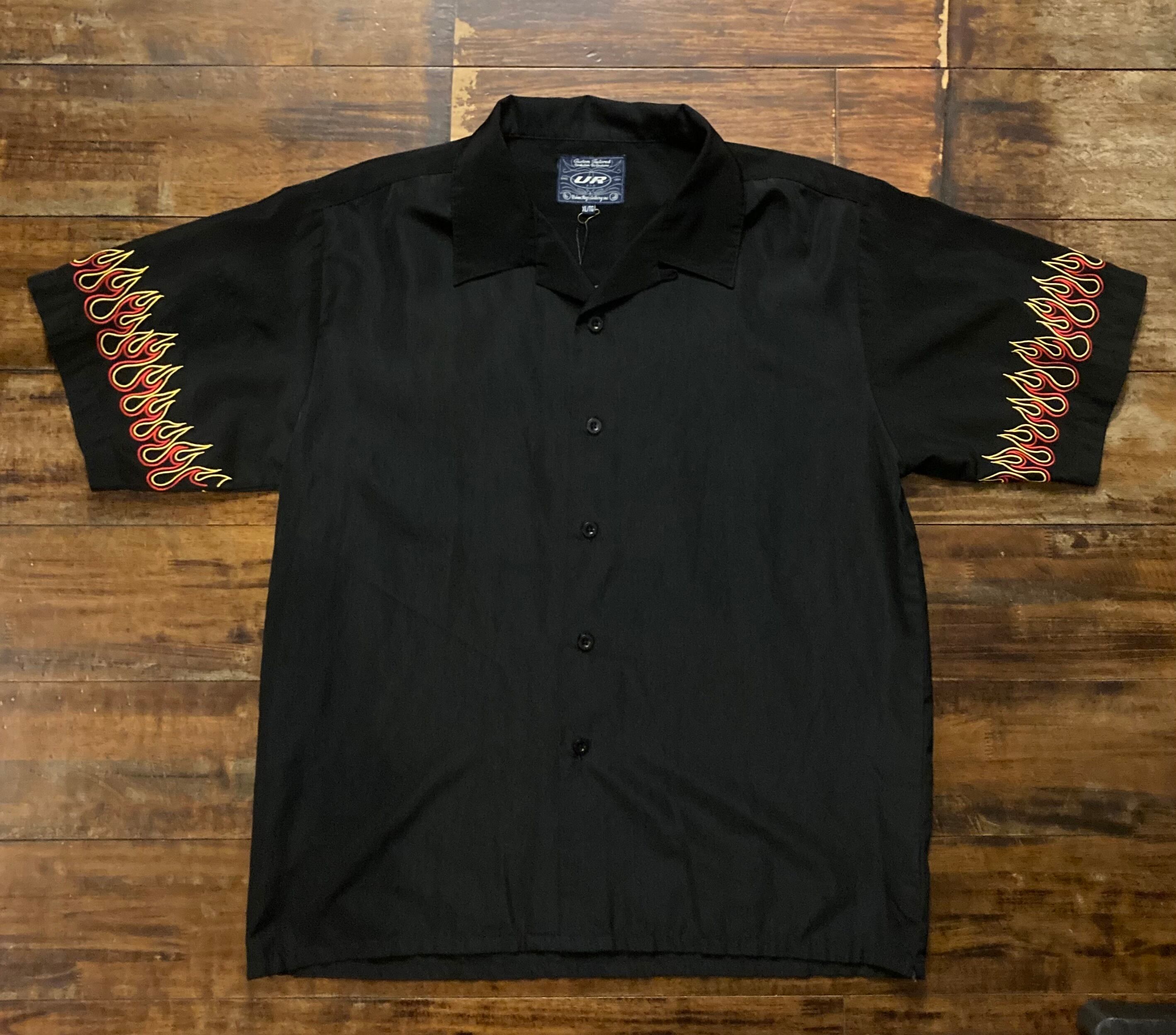 ファイヤーパターン刺繍オープンカラーシャツ