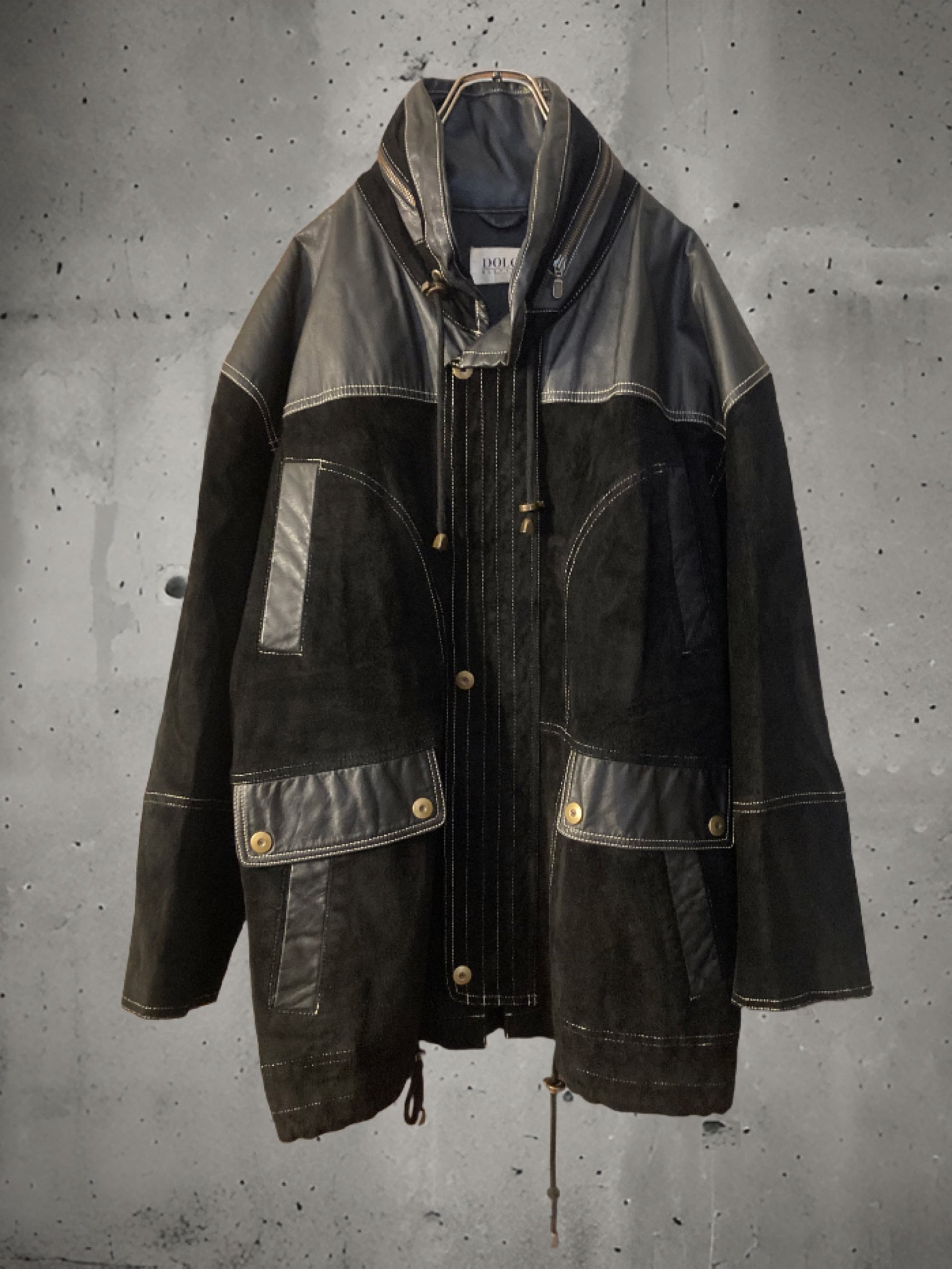 スウェードレザー×レザーミドル丈ZIPコートJKT